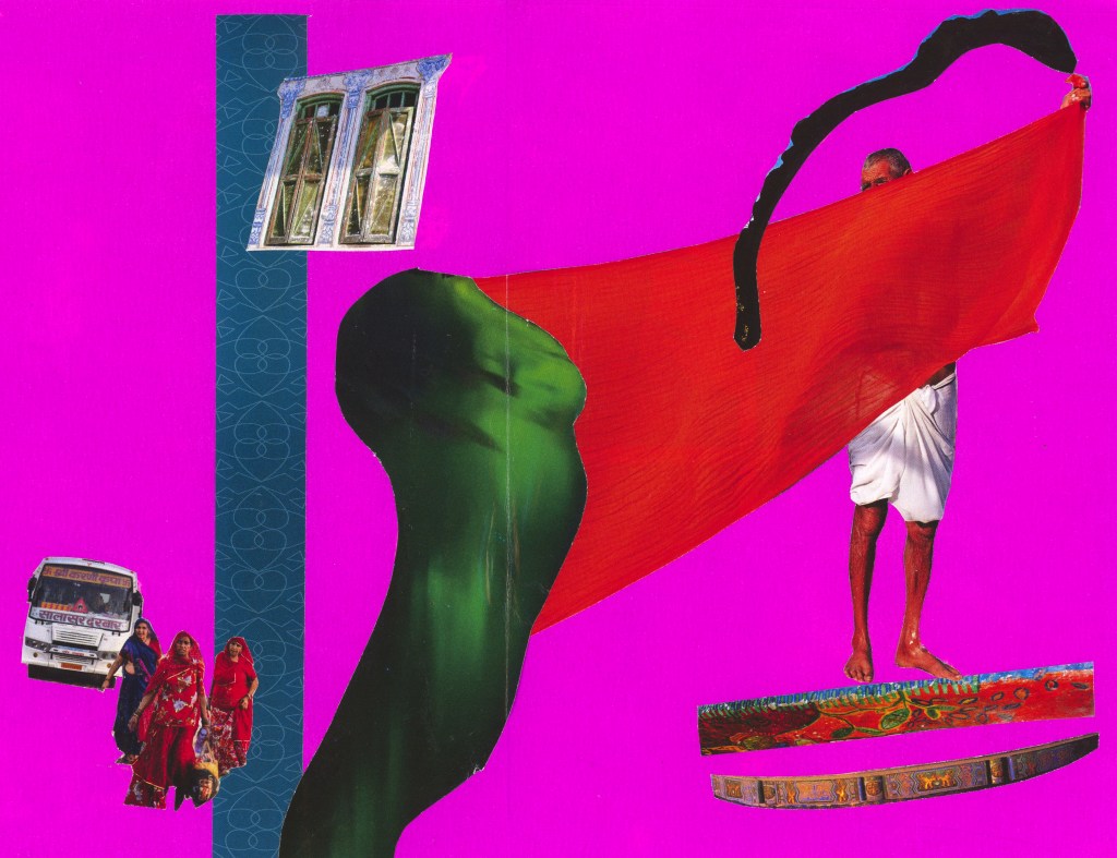 “My work reflects on my journey as an immigrant, splicing together autobiographical and fictional narratives that re-imagine what it means to belong. I aim to spark conversations around themes of diaspora, migration, and the continued legacies of colonialism. Faced with histories that have been silenced by imperial regimes, I use my work to envisage new stories.” — Divya Sharma